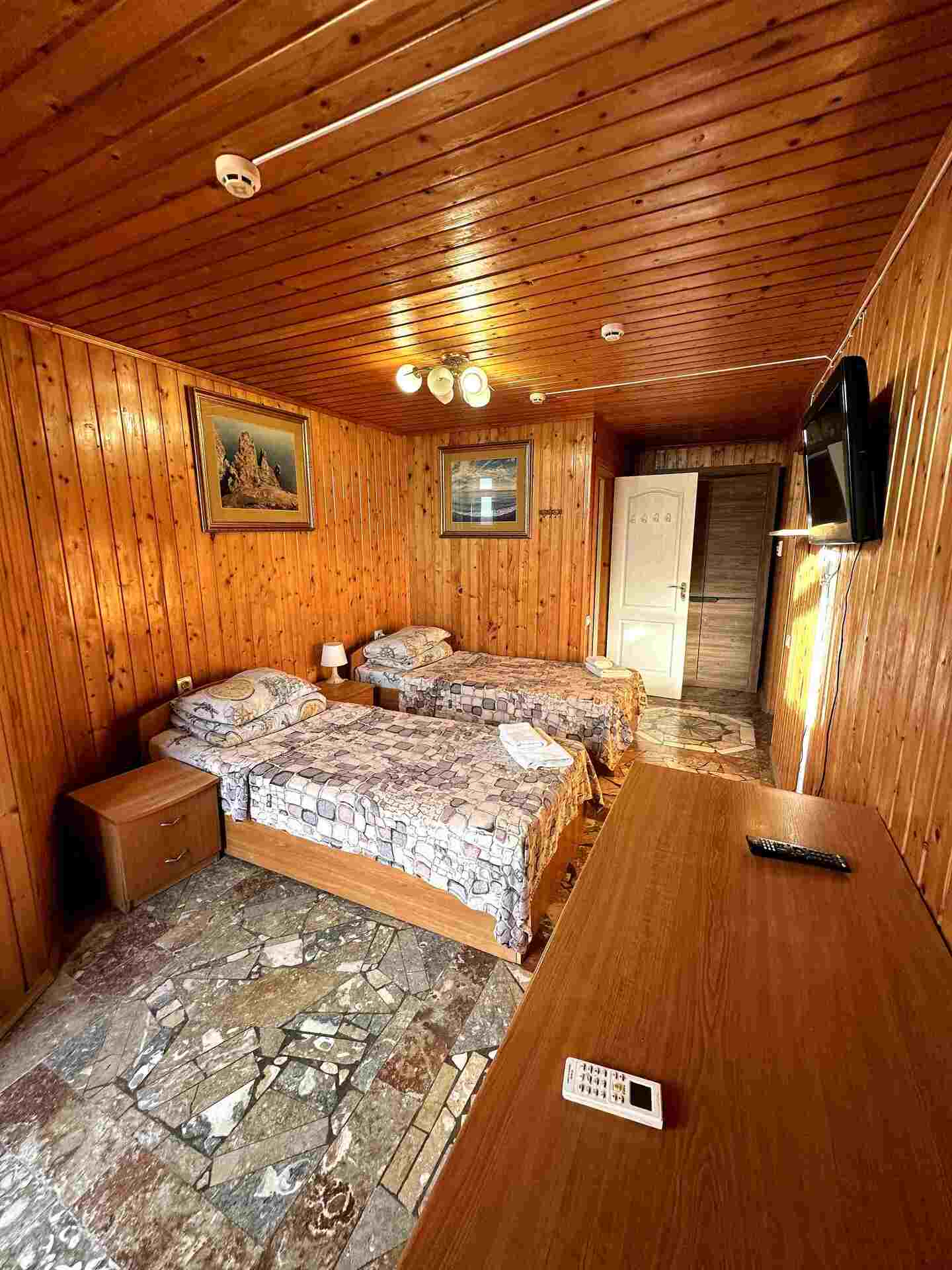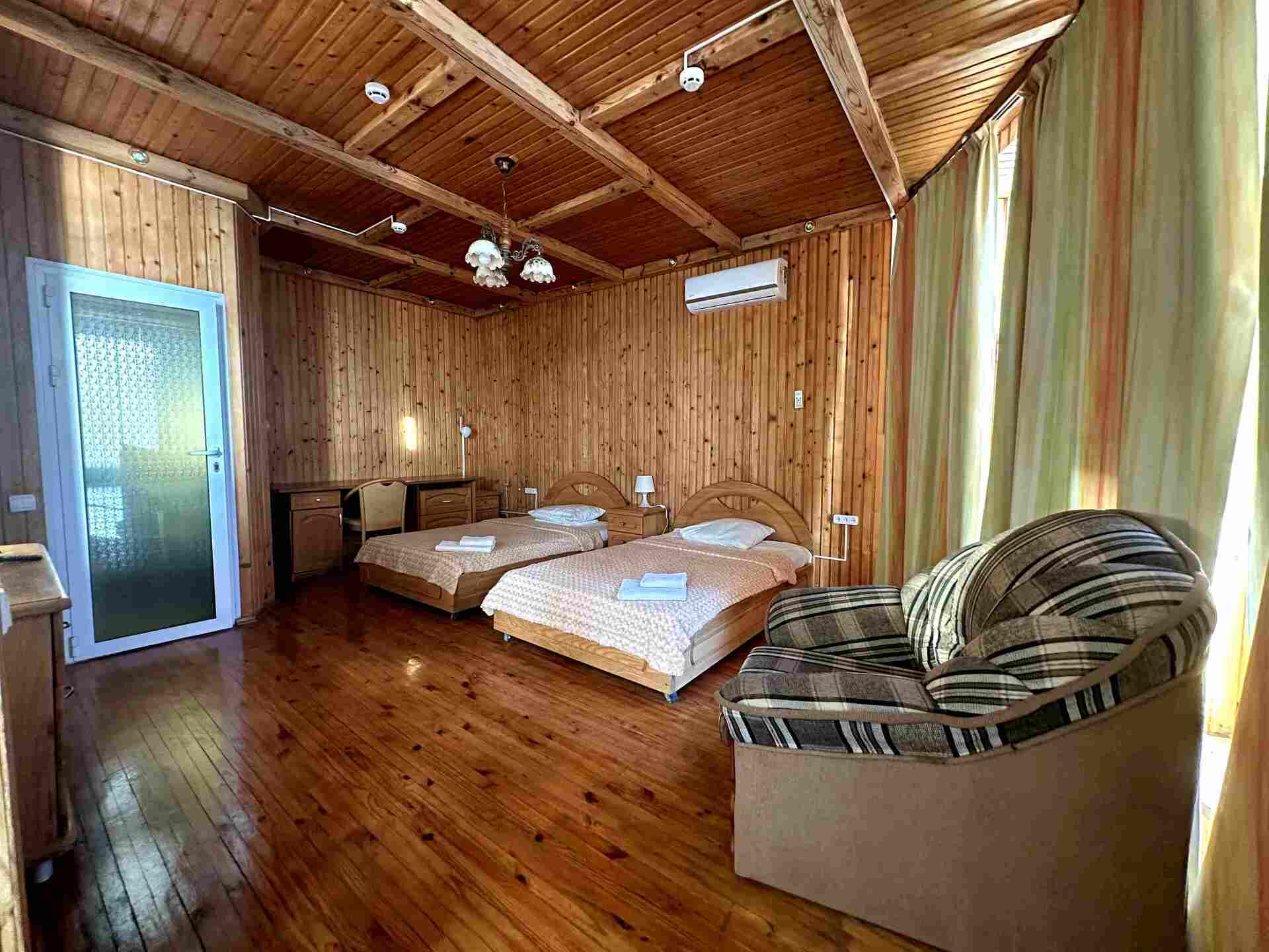 Возможны варианты с двумя односпальными кроватями и одной двуспальной. Дополнительные места – раскладной диван.